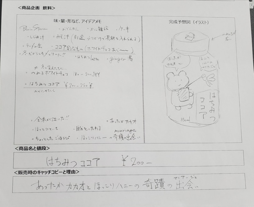 つい先日は、『商品企画』のテーマで「飲み物」の商品企画を皆様に行って頂きました!