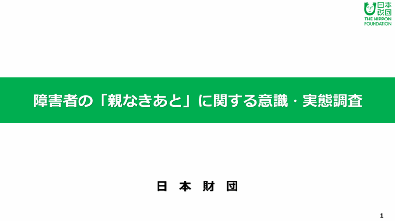 日本財団が、障がい者家族の「親なきあと」意識・実態について全国調査の結果を発表しました。